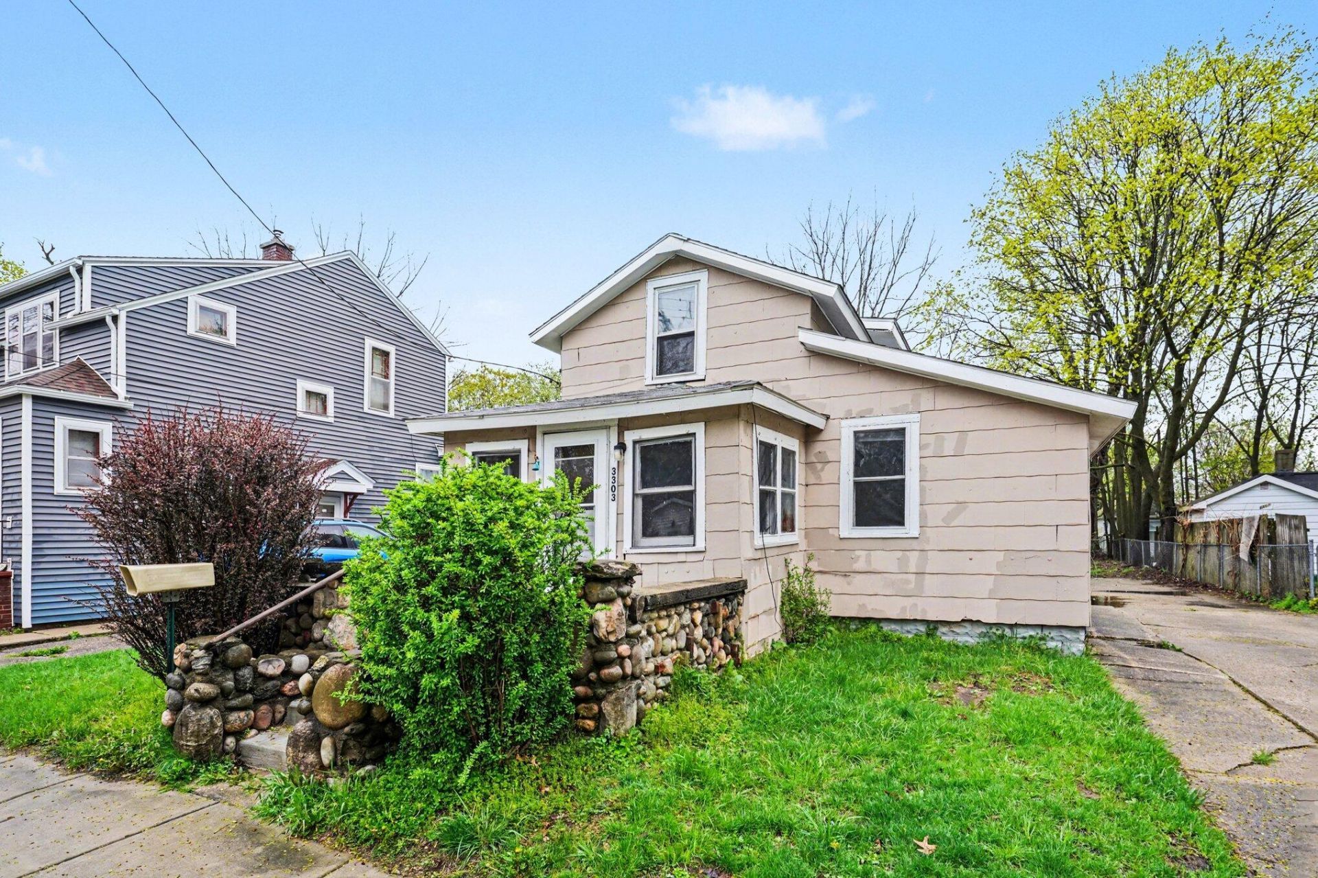 Three bedroom fixer upper in Oakwood neighborhood. One bedroom on the main level and two upstairs. Kitchen with eating area and stove and refrigerator. Two car detached garage. Large back yard is partially fenced. Home is being sold as is.